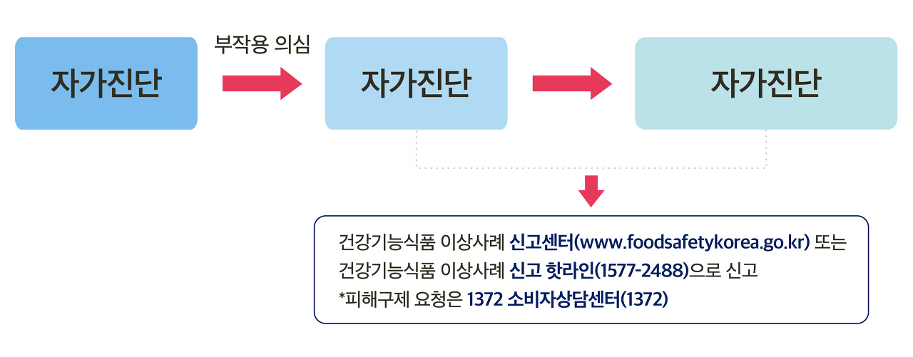 일반적인 식품도 사람에 따라서 반응이 다르게 나타날 수 있습니다. 대표적인 예가 바로 알러지인데요. 같은 음식을 먹어도 사람에 따라 면역 반응이 다르게 나타날 수 있습니다. 따라서 학교에서 급식을 총괄하는 영양사는 알러지 유발 가능성이 높은 식재료를 사용할 경우 이를 사전에 고지하는 등 많은 주의를 기울여야 하며, 「식품 등 표시기준」에서도 제품에 알러지 주의 문구를 명시하도록 되어있습니다. '※ 이 제품은 땅콩, 고등어, 새우를 사용한 제품과 같은 제조 시설에서 제조하고 있습니다.' 와 같은 문구 많이 보셨죠? 식품 섭취에 의한 건강 문제를 최소화하기 위한 노력의 일환으로 이러한 문구를 명시합니다. 알러지를 예로 들었지만, 이 외에 기저질환, 복용하는 의약품 등 매우 다양한 요인이 식품 섭취에 의한 반응에 영향을 미칠 수 있답니다. 건강기능식품도 말그대로 '식품'이기 때문에 많이 다르지 않겠죠? 같은 맥락에서 이해해주시면 됩니다. 따라서 건강기능식품을 섭취하였을 때 일부가 이상사례를 경험하는 것은 어쩌면 불가피한 일이라고도 볼 수 있습니다. 개개인의 상황에 따라 맞는 건기식이 있고, 그렇지 않은 건기식이 있을 수 있는 것이죠.