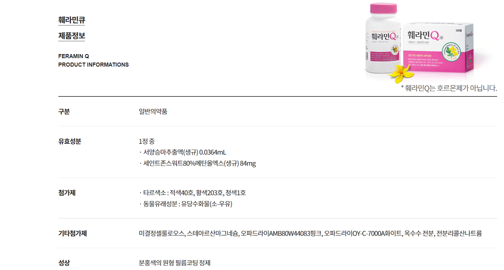 그렇기 때문에 훼라민 큐는 호르몬제가 아니라는 것을 강조하고 있습니다.
