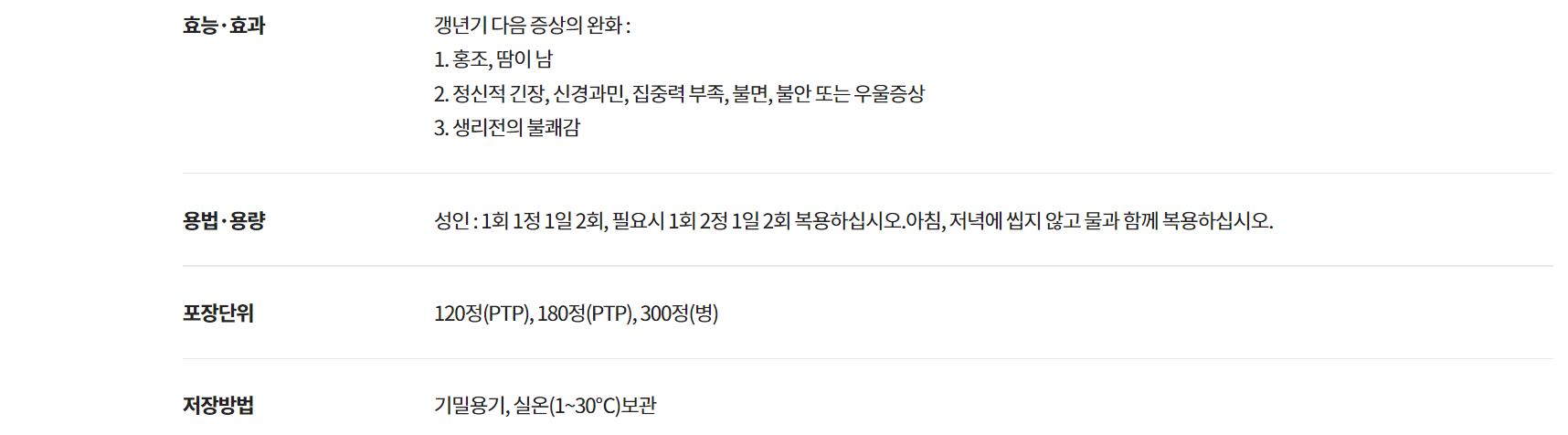 서양승마추출액과 세인트존스워트가 유효성분인 일반의약품이더라구요. (식품이 아니지만, [식품에 관하여] 카테고리에 넣게 되었네요^^;)