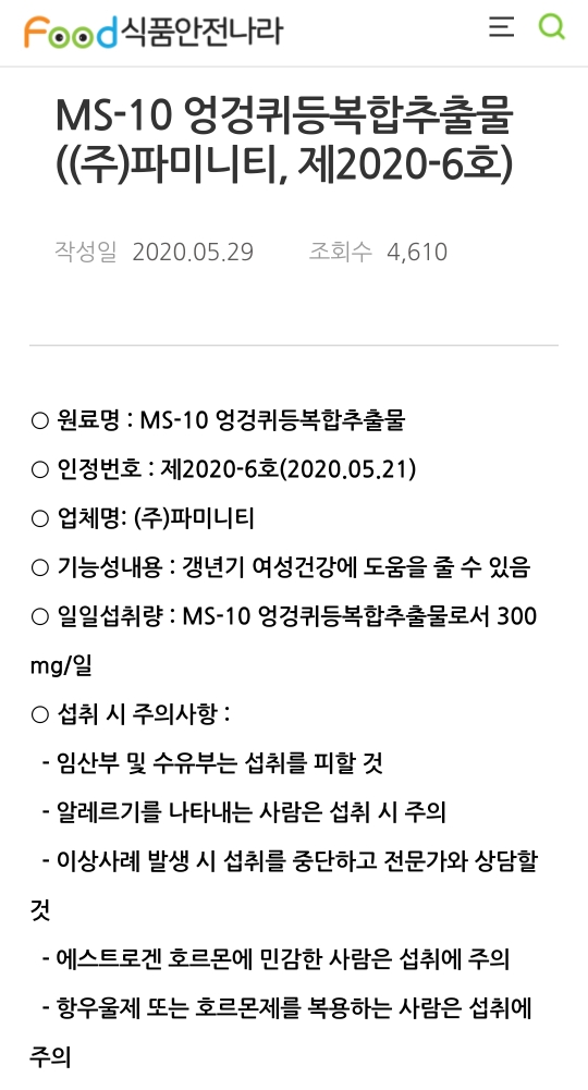 하지만 여성 갱년기 제품인 만큼, 갱년기 원료인 MS-10에 대해서 좀 더 자세히 알아봅시다!