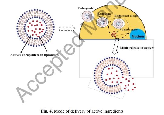 제가 밑에 참고한 논문에서 가져온 이미지입니다. 리포좀은 세포막처럼, 이중층으로 되어있어요. 이렇게 세포막과 비슷하기 때문에 수송체를 거치지 않고도 세포막을 통해 내부로 이동할 수 있는 것이지요.
