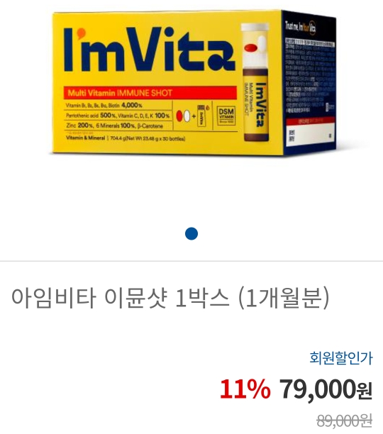 아임비타 89,000 원 / 30병 = 2,967 원 / 병