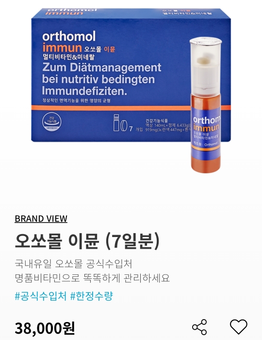 오쏘몰 38,000 원 / 7병 = 5,429 원 / 병